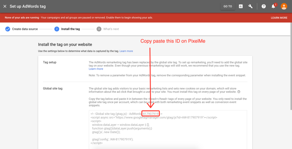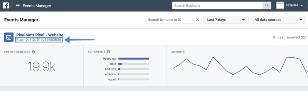2. Copy the Pixel ID of the pixel you’d like to use.