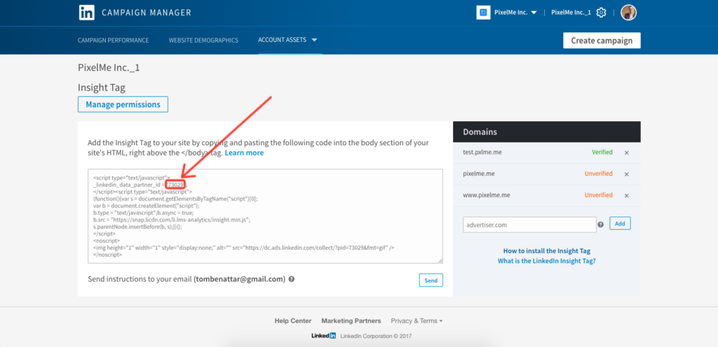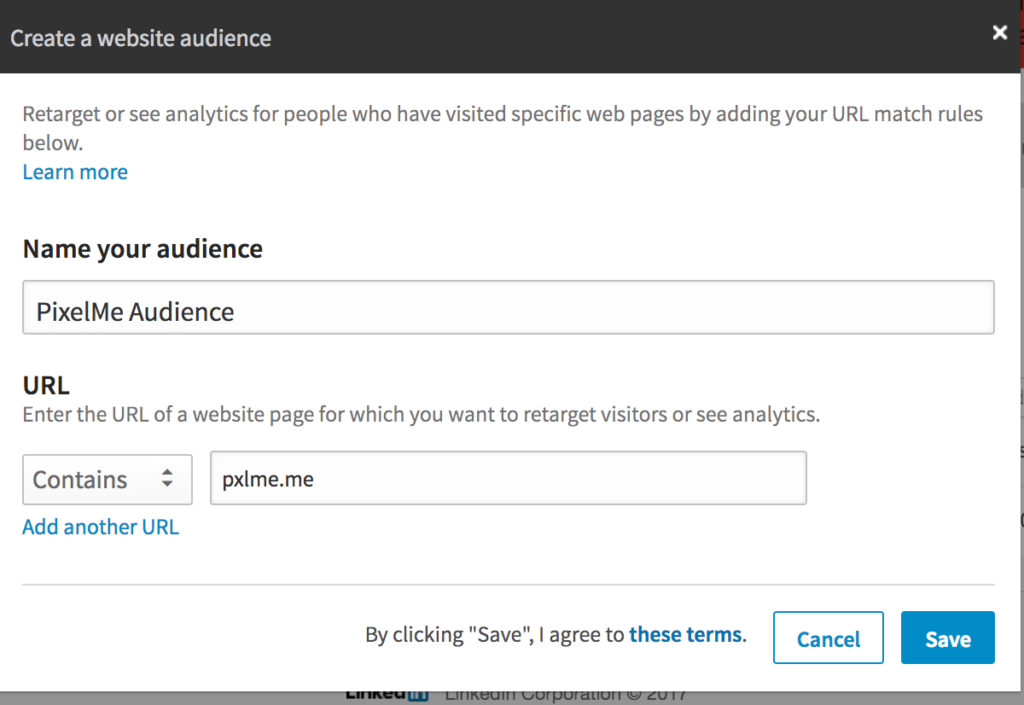 4. Go to your PixelMe dashboard. Under the Audience Builder ‘Settings’ tab, you can now add your LinkedIn pixel. And you’re done! 🎈