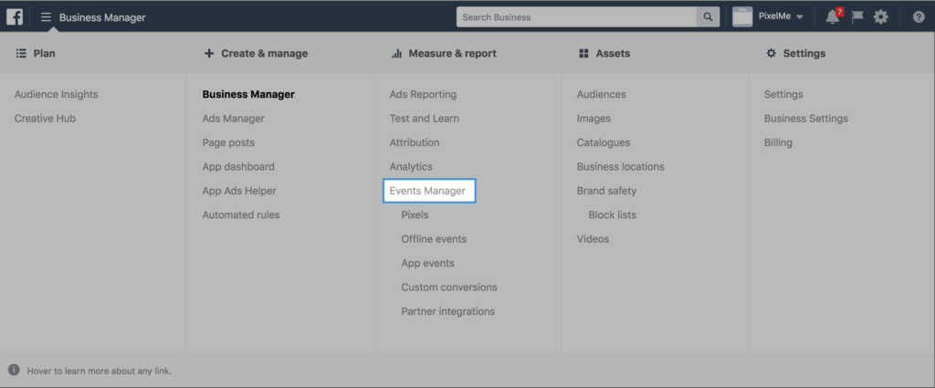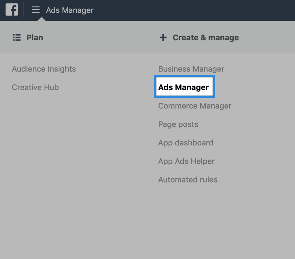 - Sign in to Facebook Ads and if you’re not automatically redirected to the Events manager, navigate to there.