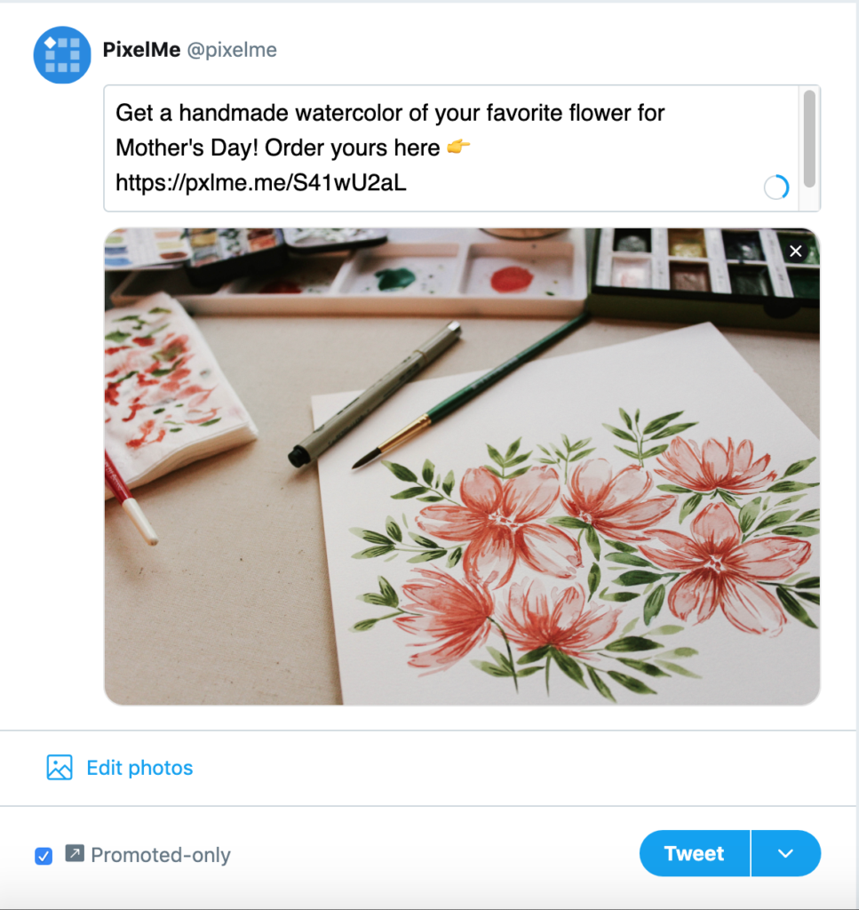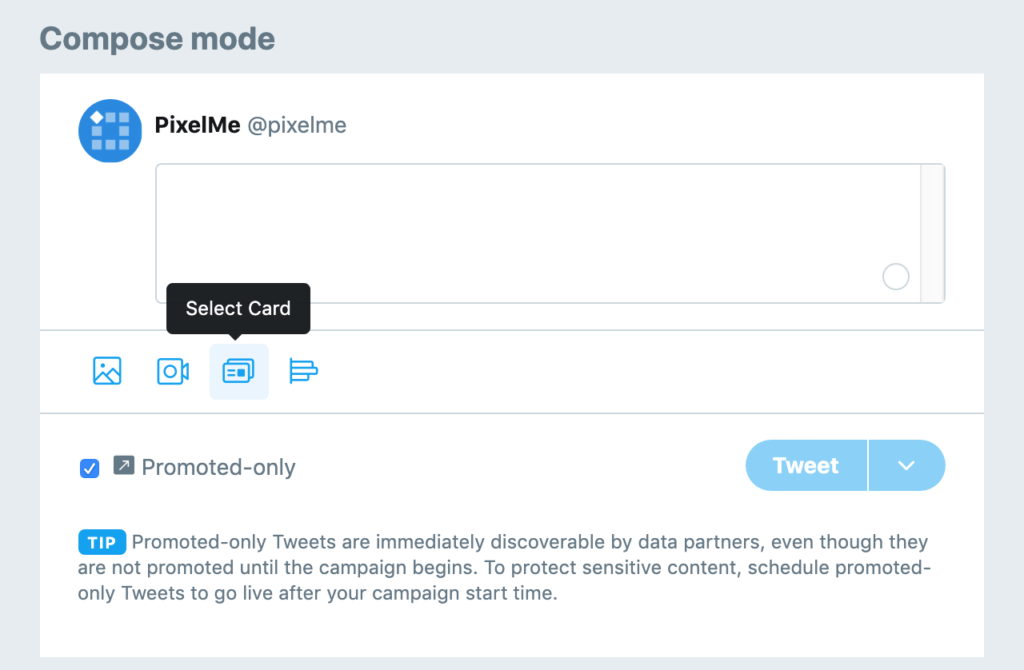 Note: if you’d like, you can also add the PixelMe URL in the Tweet itself, just in case you’re worried the audience won’t know to click the card. It’s up to you!