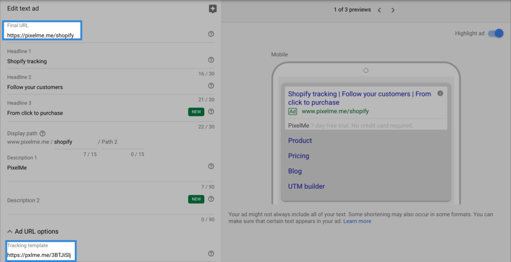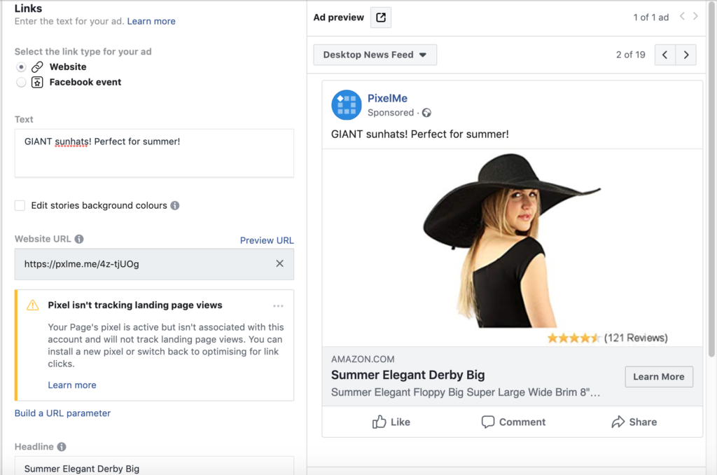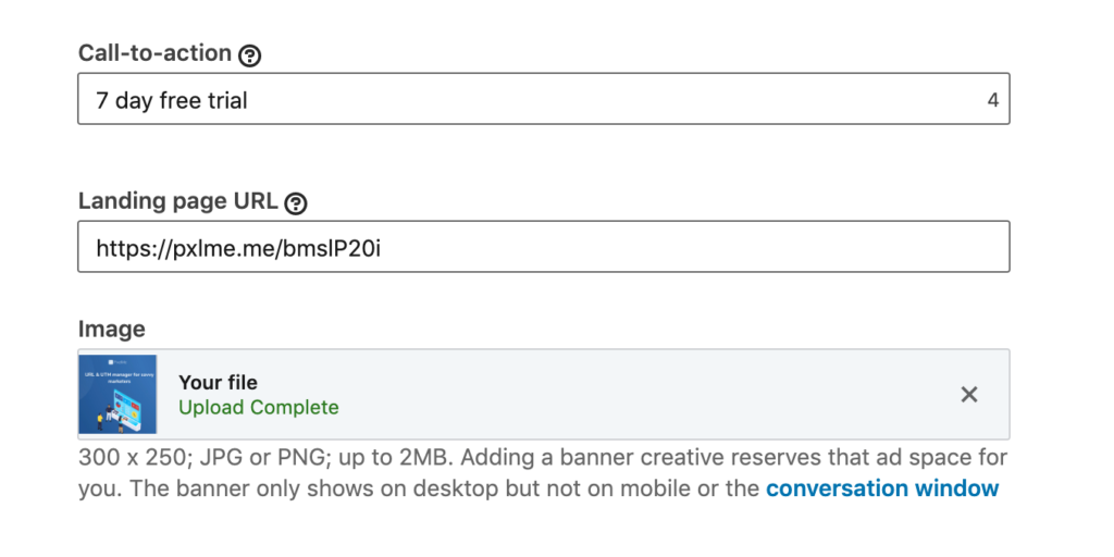 First, you’ll need to create the shortened link you want to use in your ad. Don’t forget to include any retargeting pixels you want to use.