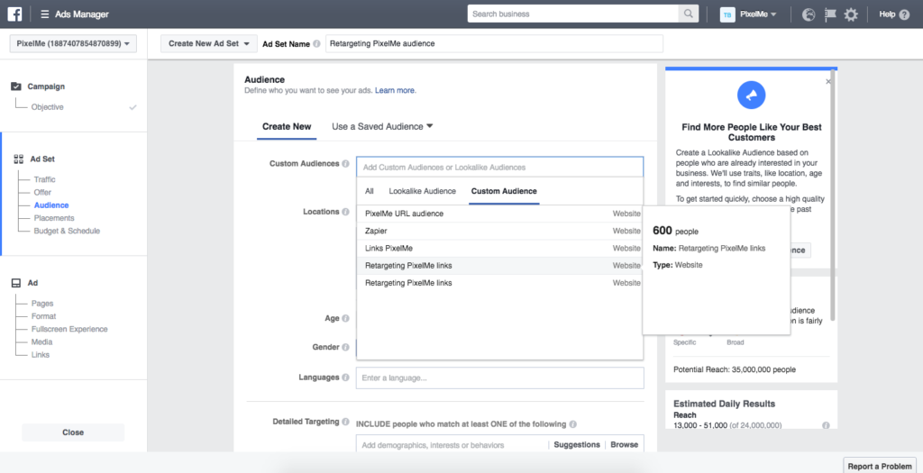 To find out more about creating custom audiences to use with ads with PixelMe, you can visit our collection about the subject.