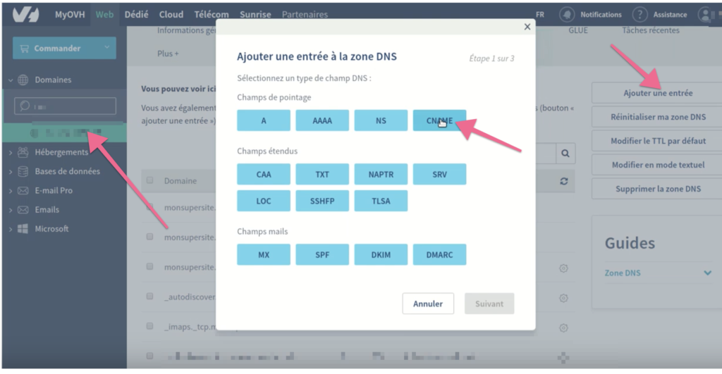 - On the DNS Management page, at the bottom of the Records section, you can add new CNAME records.