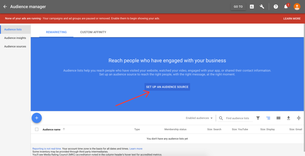 After adding at least one retargeting Pixel into your PixelMe account, visit your Audience Builder dashboard.