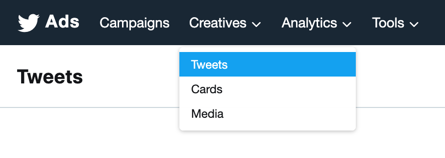 Head over to your Twitter ads account, and press ‘Creatives → Tweets’.
