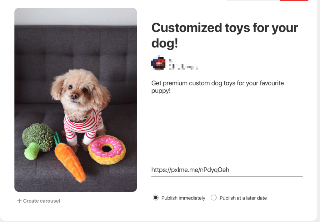 Set up your card with an image and message you’d like to have promoted. The message will be shown underneath the card, and the link should be your PixelMe URL!