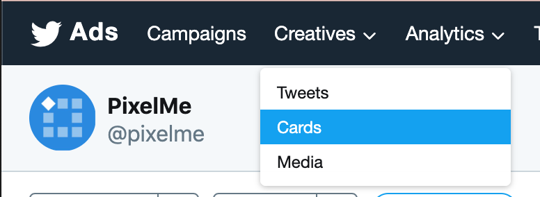 Save the card, and go to ‘Creatives → Tweets’ and press ‘New Tweet’ in the top right corner. Now, you can create a Tweet that you’d like to have as your ad, and you should be able to select the card you just made under the ‘Select Card’ option.