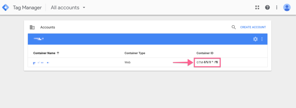 - You should be shown a list of accounts (or just one, if you only have one account). Find the container ID of the account you’d like to use and copy-paste it.
